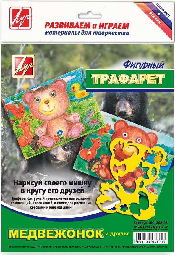 Трафарет контурный фигурный Луч МЕДВЕЖОНОК И ЕГО ДРУЗЬЯ 165х200 мм пластик