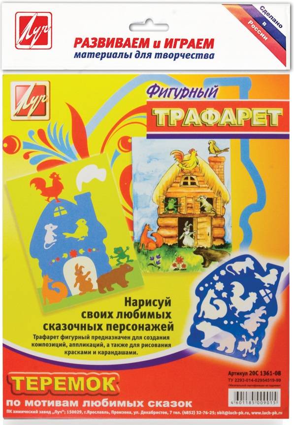 Трафарет контурный фигурный Луч ТЕРЕМОК 165х200 мм пластик