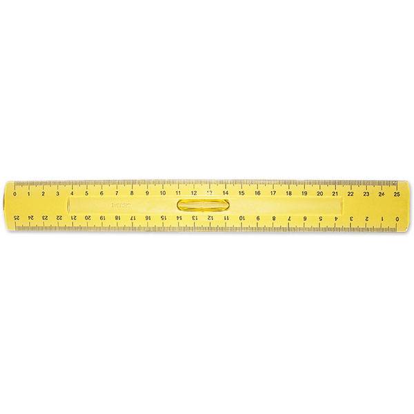 Линейка 25 см пластик тонированный, желтая с держателем
