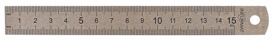 Линейка металлическая INFORMAT с длиной шкалы 15 см и четкой разметкой. Изготовлена из качественной стали. Упаковка: чехол ПВХ с европодвесом.