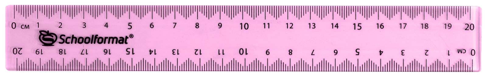 Размер линейки 20 см, что позволяет выполнять большой перечень работ. Имеет четкое нанесение шкалы делений, выполнена из прочного пластика, что делает ее устойчивой к деформации. Отлично справится с задачей построения ровных чертежей и подчеркивания необходимых слов.
