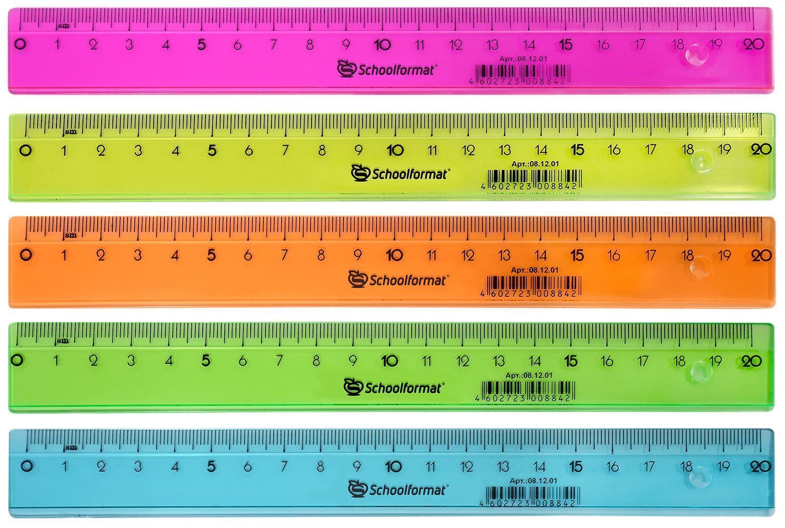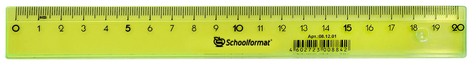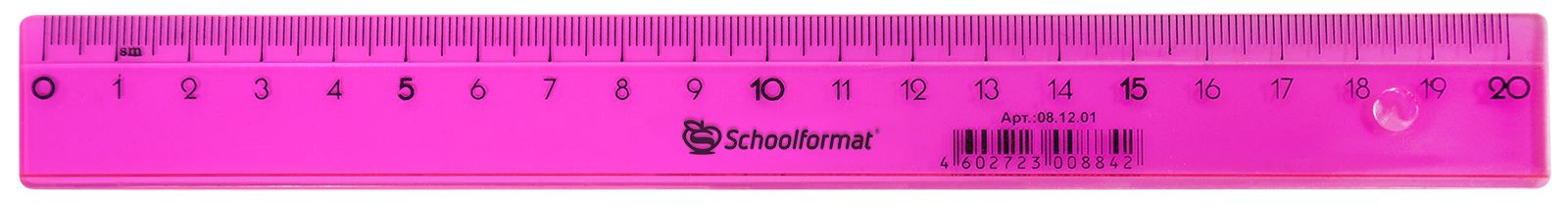 Линейка Schoolformat — практичный инструмент для учебы и повседневных задач. Изготовлена из прочного тонированного пластика, устойчивого к изгибам и износу. Оснащена односторонней миллиметровой шкалой длиной 20 см, которая обеспечивает точность измерений и удобство при черчении. Цвета в ассортименте.