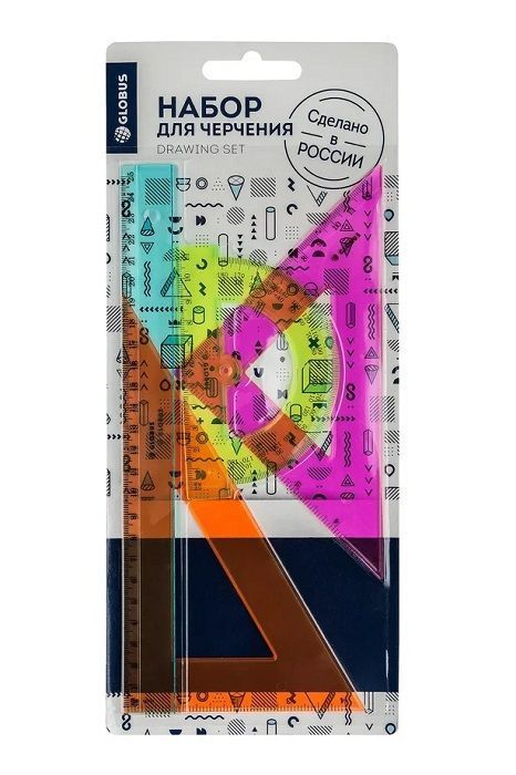 | Комплектация набора: | линейка - 30 см, два треугольника, транспортир |