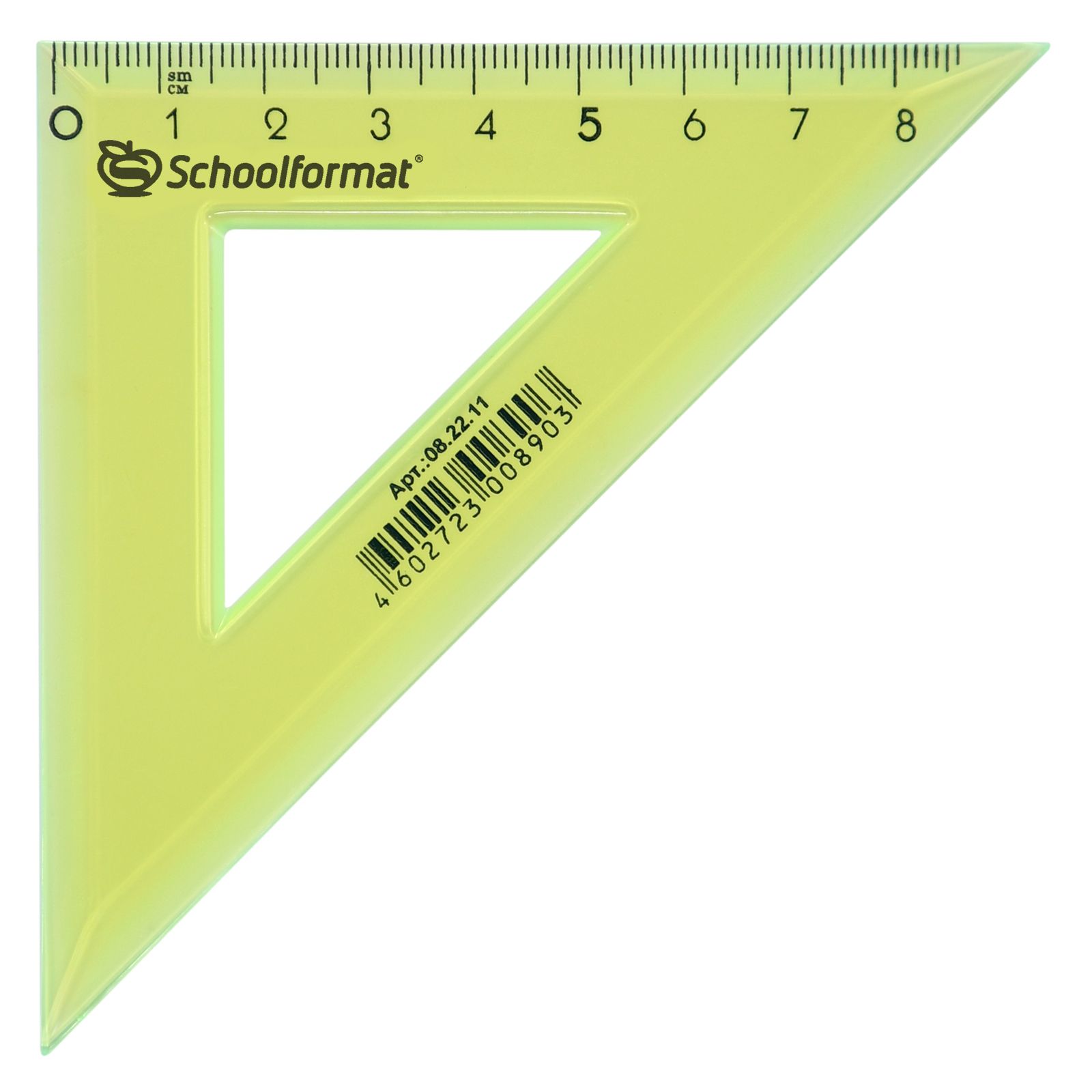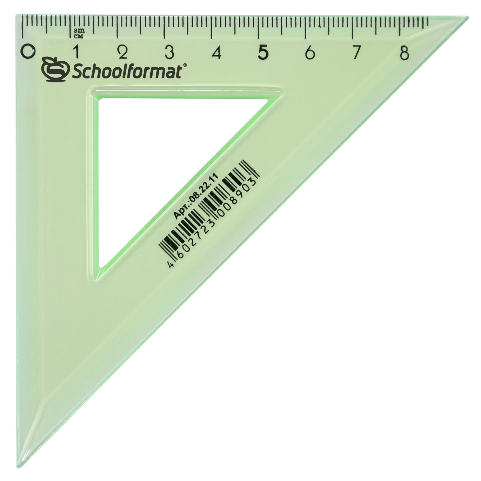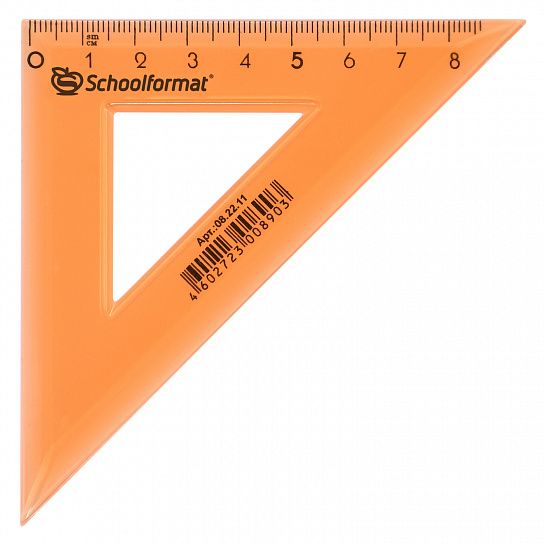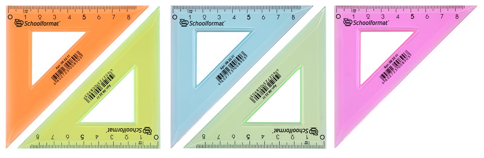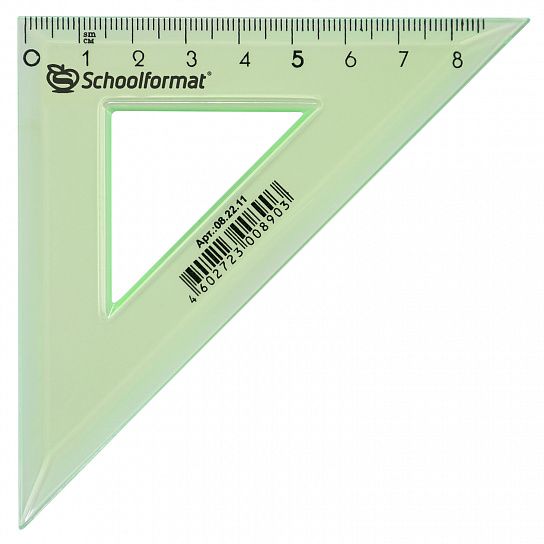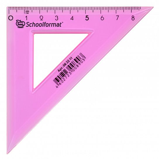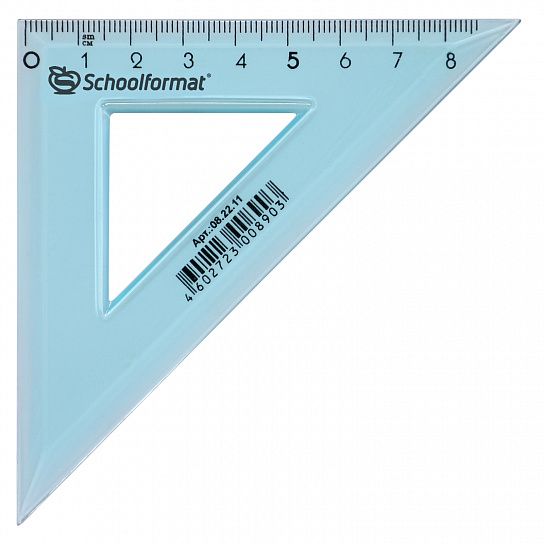 Пластиковый треугольник Schoolformat — удобный инструмент для построения углов и проведения точных линий. Оснащен односторонней миллиметровой шкалой длиной 90 мм, что обеспечивает точность измерений. Угол составляет 45°. Представлен в цветах ассорти.