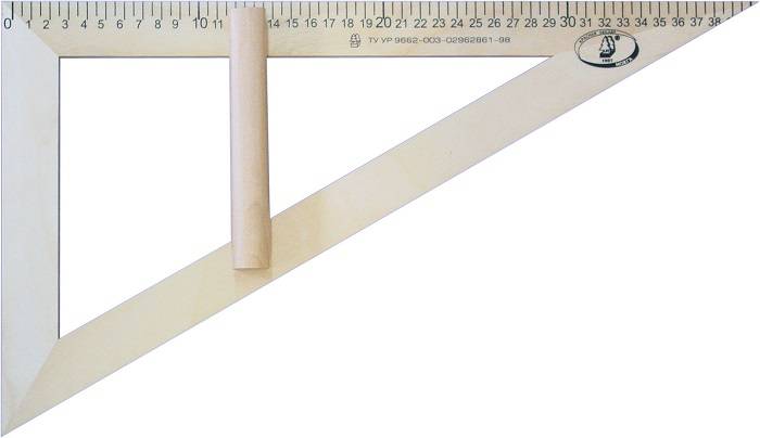 Треугольник классный. Размер: длина шкалы - 400 мм, углы 90х60х30 градусов. Угольник изготовлен из твердолиственных пород древесины. Незаменимый помощник учителя геометрии, алгебры, физики, имеет держатель для удобства черчения на вертикальной или наклонной школьной доске.