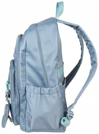 Водоотталкивающая ткань защищает от загрязнений и влаги. Накладные карманы являются не только украшением рюкзака, но и вмещают массу вещей, а декоративная стропа позволит закрепить на рюкзак фонарик или брелок. Так же имеется маленький стильный кошелек на карабине, в котором можно носить мелочи. На спине имеется специальный «антивандальный» карман, боковые карманы уместят бутылку с водой и все необходимые мелочи, а фронтальные карманы очень удобны для хранения пропусков, карт или ключей от дома. Внутреннее пространство разделено плотным делителем для планшета или ноутбука.