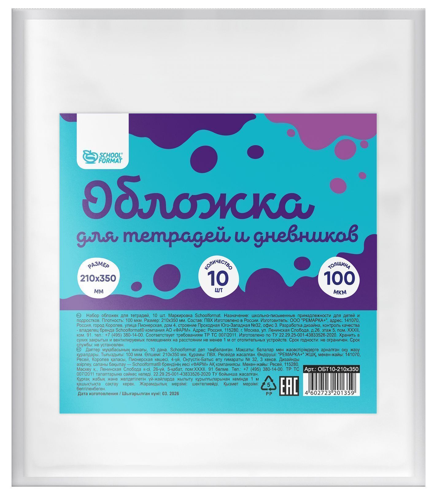 Обложки для тетрадей Schoolformat выполнены из прочного ПВХ толщиной 100 мкм, который обеспечит надежную защиту бумажных изделий в школьном рюкзаке как от загрязнений и механических повреждений, так и от попадания влаги.