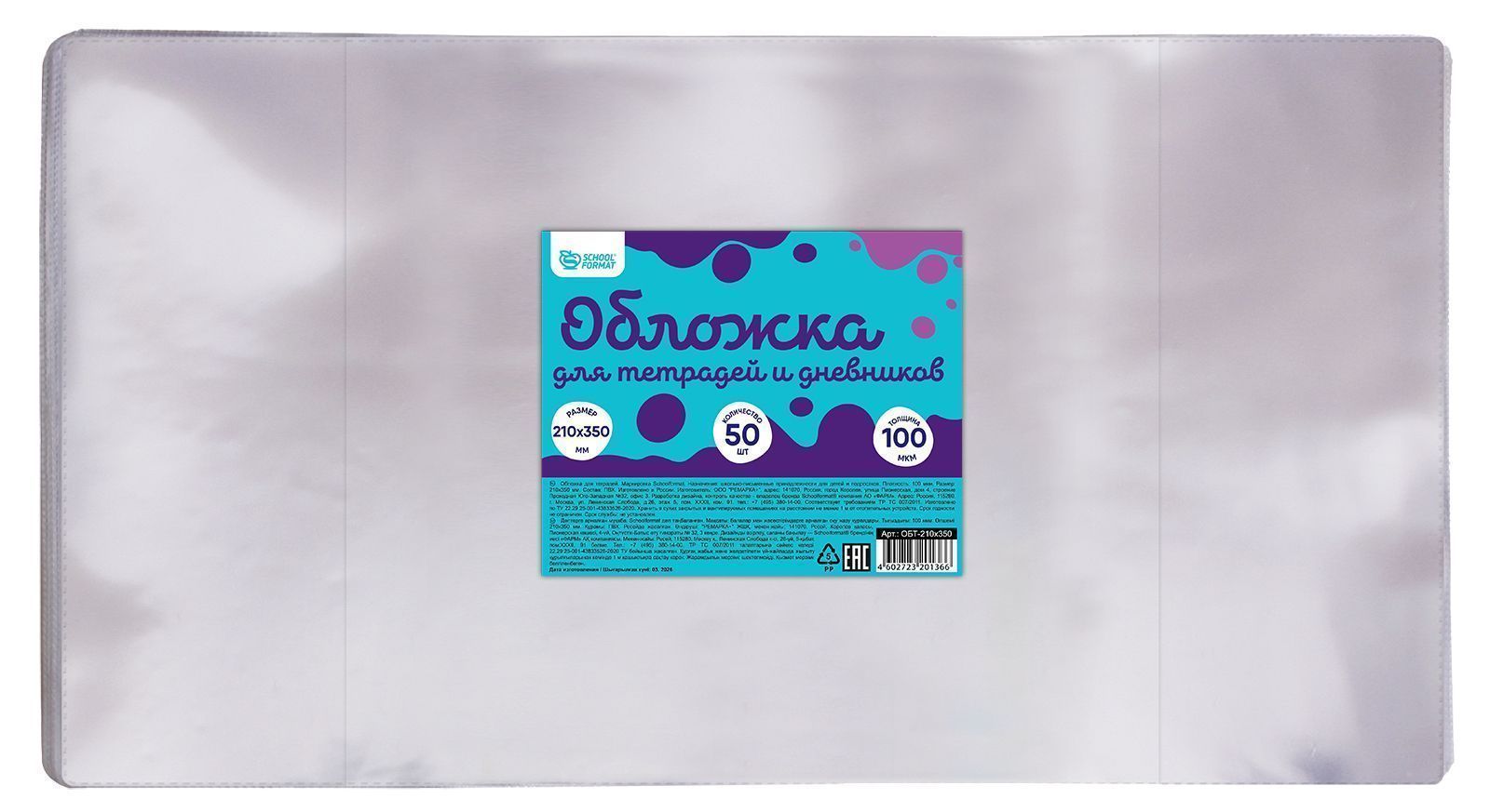 Обложки упакованы по 50 штук.Упаковка сопровождается привлекательным цветным вкладышем. На каждой обложке имеется индивидуальный штрих-код.