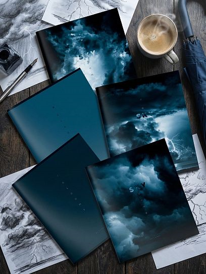 Тетрадь 48 л. А5 клетка, на скрепке, офсет LOREX THUNDER CLOUDS мелованный картон, двойная обложка, запечатка форзаца, soft touch