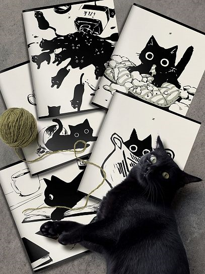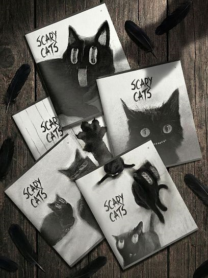 Тетрадь 48 л. А5 клетка, на скрепке, офсет LOREX SCARY CAT мелованный картон, двойная обложка, запечатка форзаца, soft touch