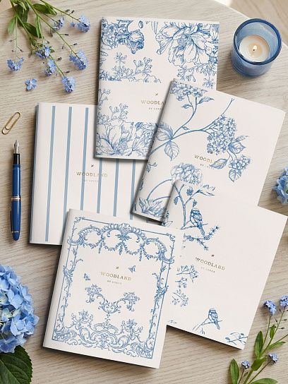 Тетрадь 48 л. А5 клетка, на скрепке, офсет LOREX BLUE FLOWERS мелованный картон, двойная обложка, запечатка форзаца, soft touch, фольга