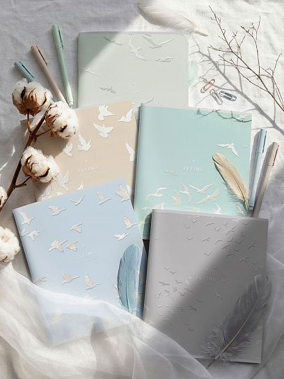 Тетрадь 48 л. А5 клетка, на скрепке, офсет LOREX FLYING BIRDS мелованный картон, запечатка форзаца, soft touch, выборочный УФ-лак