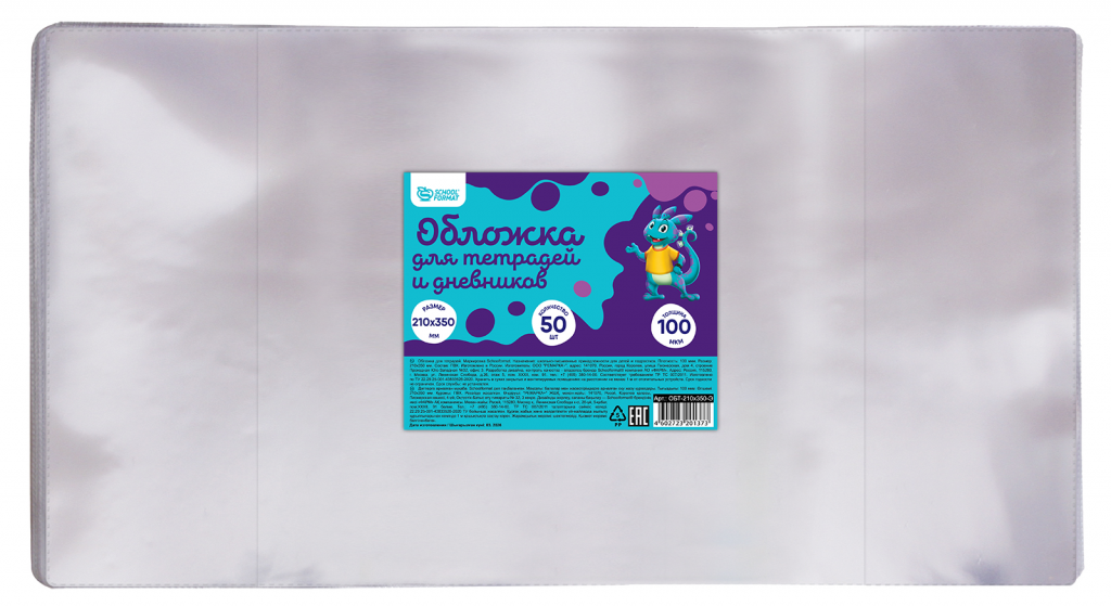 Размер: 210×350 мм (для стандартных школьных тетрадей).