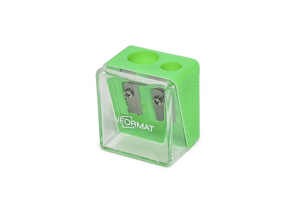 Цвет: ассорти Упаковка: дисплей Комплектация: с контейнером Наличие индивидуального штрих-кода: Да Количество отверстий для заточки: 2 отверстия Серия: OFFICE CUBE Мин. партия и варианты упаковок: 1 / 24 / 720 Точилка INFORMAT OFFICE CUBE с контейнером ассорти, корпус пластик, 2 отверстия, в дисплее