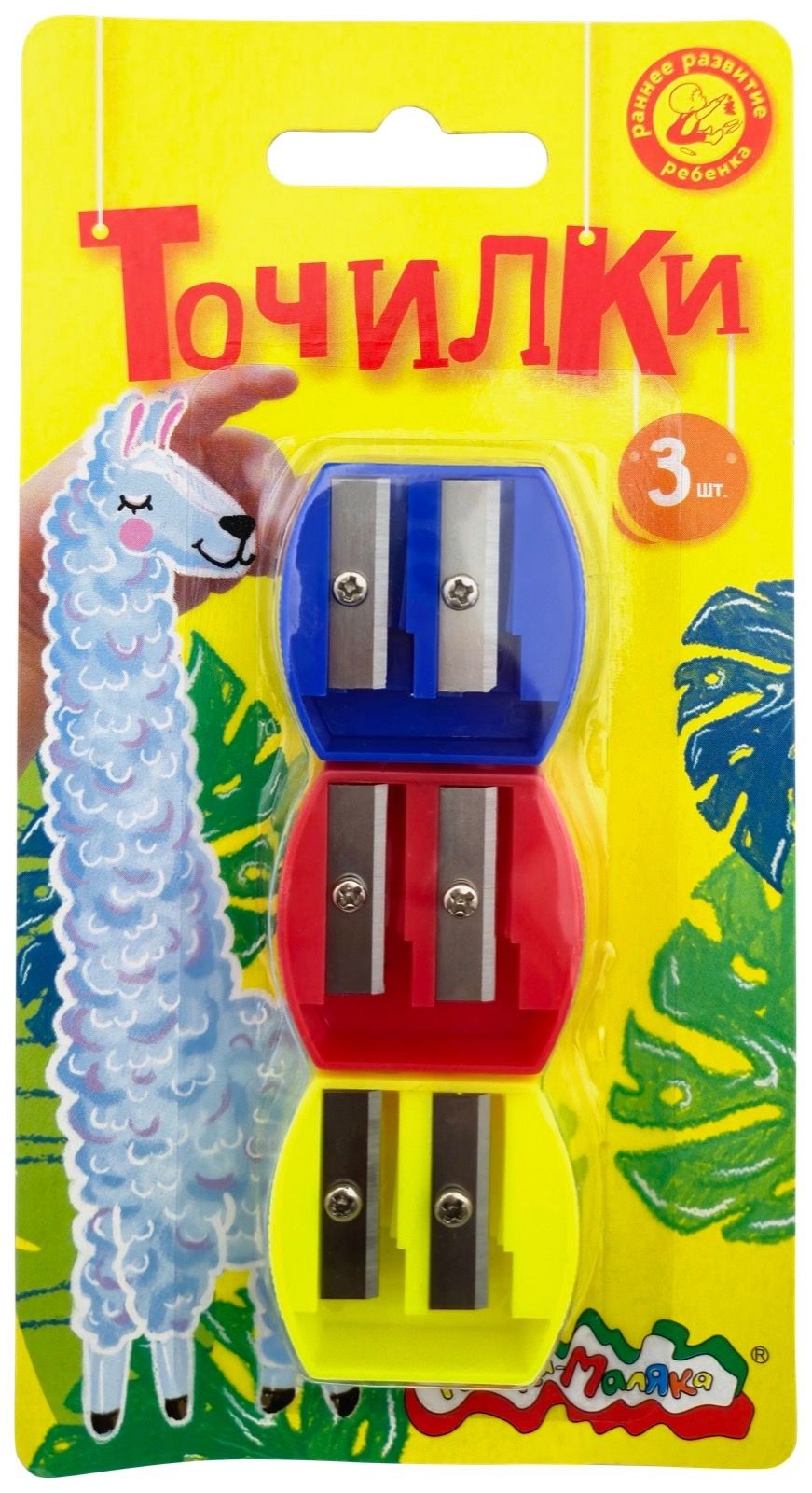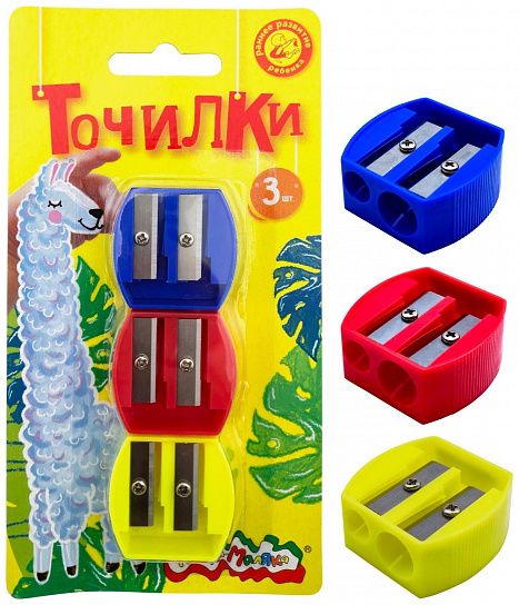 Цвет: ассорти Упаковка: блистер Наличие индивидуального штрих-кода: Да Форма: квадратная Количество отверстий для заточки: 2 отверстия Торговая марка: Каляка-Маляка Мин. партия и варианты упаковок: 1 / 24 / 144 Набор точилок Каляка-Маляка ассорти, корпус пластик, 2 отверстия, в блистере 3 шт