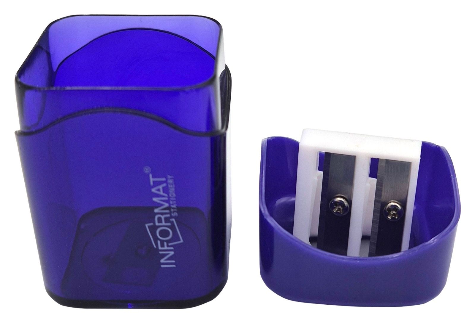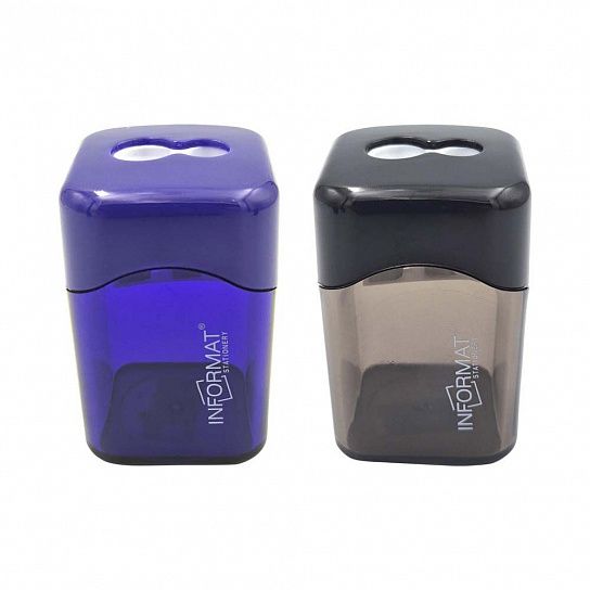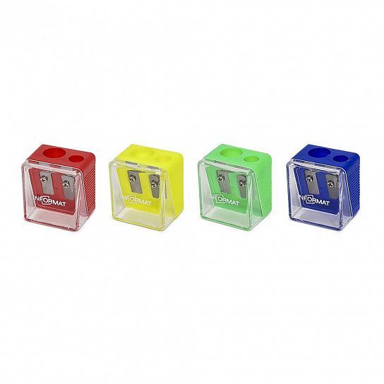 Цвет: ассорти Упаковка: термоусадочная плёнка Комплектация: с контейнером Наличие индивидуального штрих-кода: Да Форма: прямоугольная Количество отверстий для заточки: 2 отверстия Мин. партия и варианты упаковок: 1 / 24 / 288 Набор точилок INFORMAT OFFICE CUBE с контейнером ассорти, корпус пластик, 2 отверстия, в термоусадке 2 шт