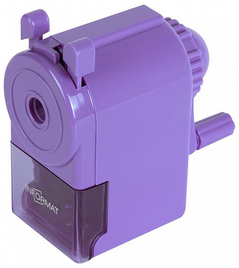 Цвет: фиолетовый Комплектация: с контейнером Вид точилки: механическая Количество отверстий для заточки: 1 отверстие Серия: Stylish Материал механизма: металл Мин. партия и варианты упаковок: 1 / 96 Точилка механическая INFORMAT Stylish, корпус пластиковый, фиолетовая