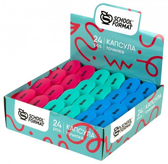 Цвет: ассорти Упаковка: дисплей Комплектация: с контейнером Наличие индивидуального штрих-кода: Да Форма: фигурная Количество отверстий для заточки: 1 отверстие Мин. партия и варианты упаковок: 1 / 24 / 720 Точилка Schoolformat КАПСУЛА с контейнером, ассорти, корпус пластик, 1 отверстие, в дисплее