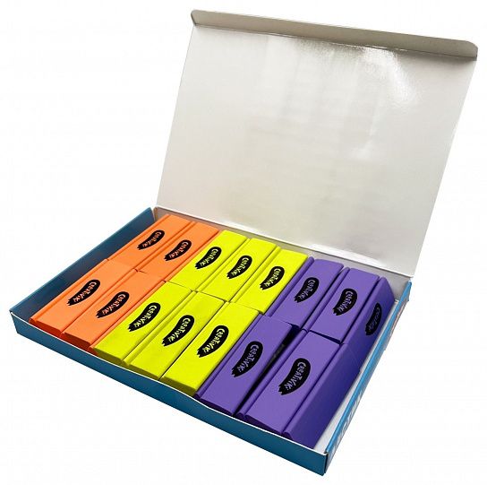 Цвет: ассорти Размер: 55х25х10 мм Наличие европодвеса: Да Упаковка: пакет Вид чертежных принадлежностей: Набор ластиков Материал: термопластичная резина Мин. партия и варианты упаковок: 1 / 36 / 216 -
