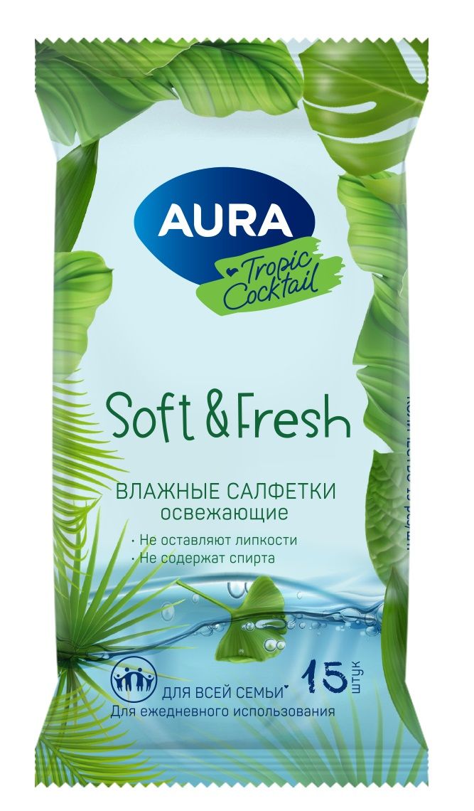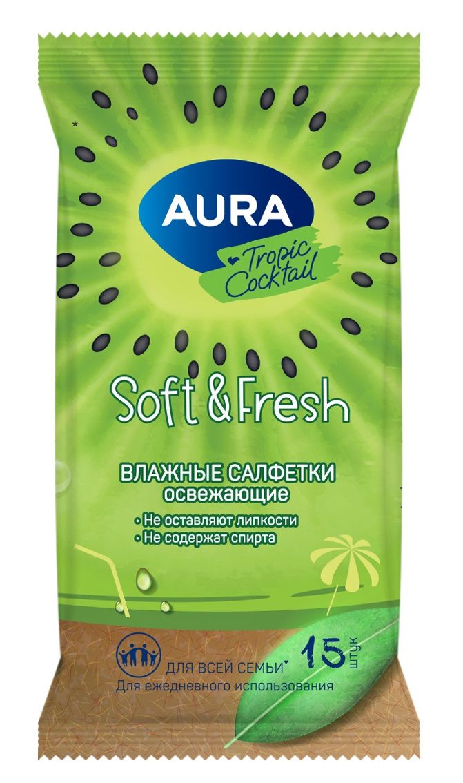 Цвет: белый Размер: 15x13 см Материал: нетканый материал Вид изделия: Салфетки влажные Наличие спирта в составе: бесспиртовой Серия: TROPIC COCKTAIL Мин. партия и варианты упаковок: 1 / 110 Салфетки влажные AURA TROPIC COCKTAIL 15x13 см ароматизированные белые 15 шт