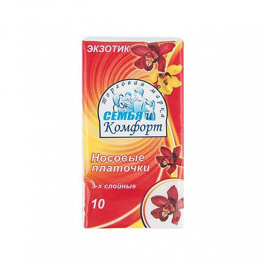 Цвет: белый Размер: 19х20 см Материал: целлюлоза Вид изделия: Платочки носовые Количество слоев: 3 слоя Ароматизированные: Да Мин. партия и варианты упаковок: 1 / 10 / 240 Платочки бумажные носовые Семья-комфорт 3-слойные 19х20 см ароматизированные белые 10 шт